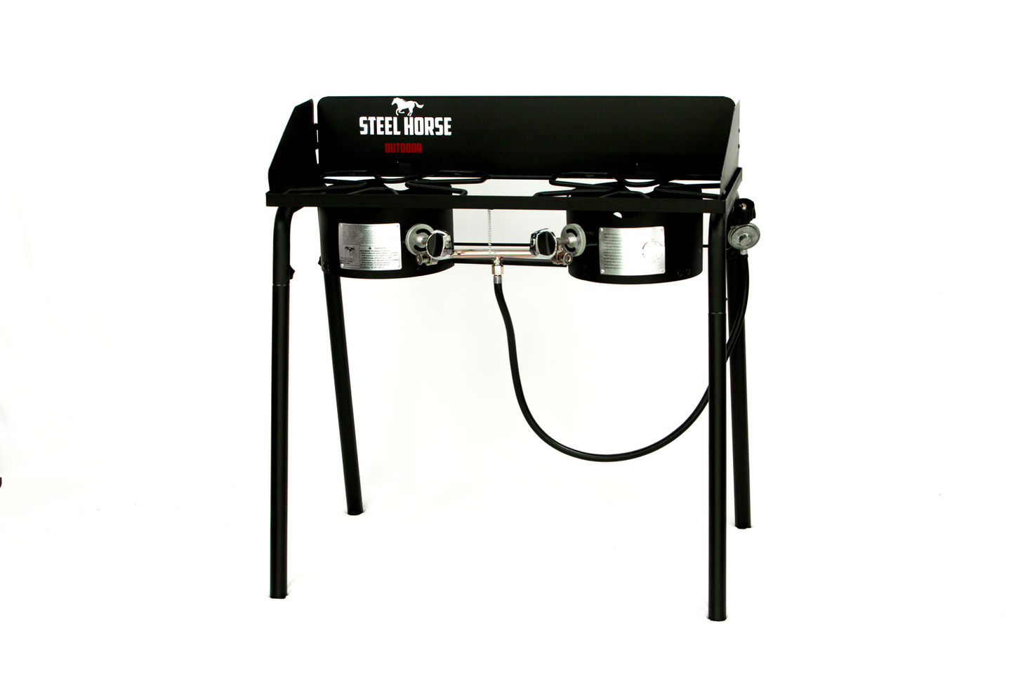 Built to withstand the rugged outdoors, the Steel Horse Outdoor Dual Camp Stove is your go-to culinary companion. The Heavy-Duty Welded Steel Frame and Solid Steel Burner Rack provide unmatched durability, while the Cast Iron Burner delivers a total of 60,000 BTUs for powerful and efficient cooking.