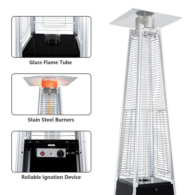 The Steel Horse Outdoor Propane Tower Stand Heater, is a perfect blend of style and functionality for your outdoor spaces. Crafted with stainless steel burners and a double-mantle heating grid, this heater guarantees optimal durability for prolonged use. The mesmerizing glass flame tube not only provides warmth but also serves as a captivating centerpiece, enhancing the beauty of your courtyard. With a reliable ignition system, including a regulator, thermocouple, and anti-tilt safety devices, safety and ease of use are at the forefront.